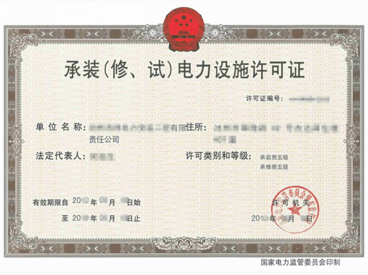 1.申請 一級至三級許可證的,分別擁有5年以上與所申請許可證類別相適應的電力設施安裝 、維修或試驗管理工作經歷,具有電力相關專業中級以上職稱;其中申請一級許可證的,應具有電力相關專業高級職稱;